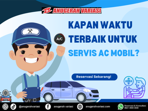 Waktu terbaik untuk service AC ringan adalah setiap 10.000 km, sedang untuk service besar adalah sekitar 20.000-40.000 km. Namun anda juga bisa melakukan servis minimal 6 bulan sampai satu tahun sekali. Atau jika anda merasa AC Mobil anda terdengar suara berisik atau bahkan bau tak sedap yang muncul dan sangat menganggu dapat menjadi alarm bahwa AC mobil sudah waktunya dilakukan servis.